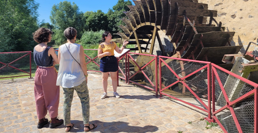 Après une visite du moulin Cyprien, les participants découvrent et expérimentent la transmission du mouvement au moyen d’engrenages et fabriquent leur propre roue à aubes.
