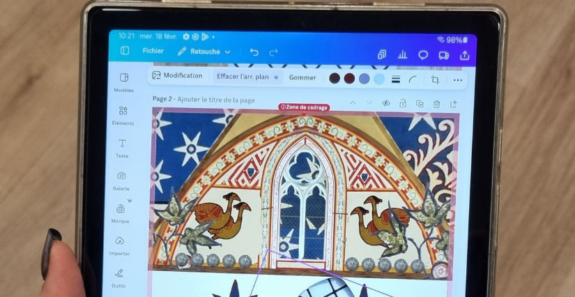 De la photo à la fresque numérique : photographiez, assemblez et réinventer la peinture murale du manoir en collage digital avec la Microfolie de Sablé-sur-Sarthe.